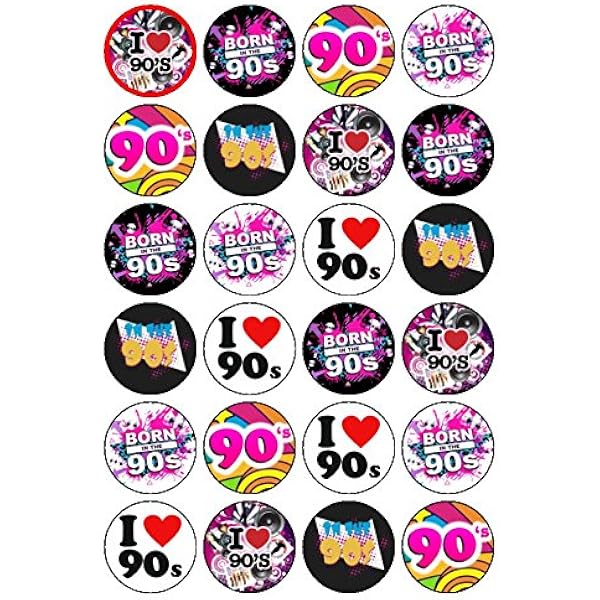 24x 90 S Nineties Party Mix 1 5 3 8cm Pre Cut Premium Rice Paper Edible Cake Toppers Amazon Co Uk Grocery